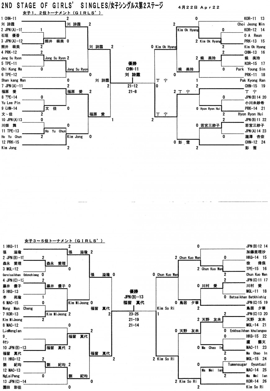 제10회 동아시아 호프스 대회 개인전 경기결과